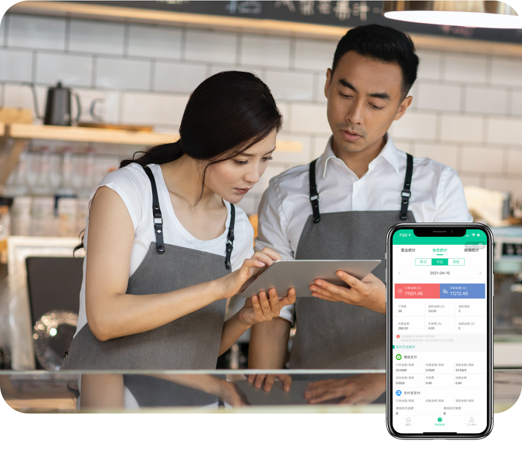 作为门店管理者,我们同时为您提供了移动端和电脑端的管理后台,让您随时随地一手掌握生意信息。